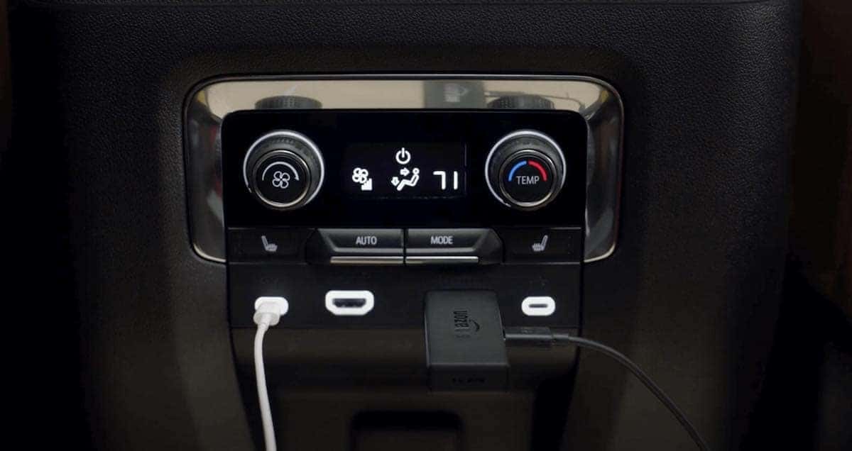 The 2nd row has 2 USB-C ports, 2 HDMI ports, and a power outlet that will enable you to connect and power a multitude of devices such as the Amazon Fire Stick, Apple TV, Roku, Xbox, PlayStation, smart phones, tablets, laptops, and more! Standard USB ports are on their way out and in the pic below you’ll see that there are only USB-C ports for the rear. If you still only have the old USB cord, you can get new USB-C versions for your device or even a simple conversion cable. They are very inexpensive and readily available. By using the onboard 4G LTE WiFi connection will enable you to steam content through these devices that don’t have their own data plan. WiFi data packages are available for purchase for your Tahoe and come at a very reasonable price.