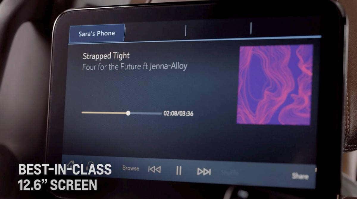 Yes! The front 10″ touch screen on the dash can provide the driver a glimpse of what media is showing on the rear screens! You can see how this cool feature will clear up any worrying should you hear curious giggles coming from the back rows. You can even mute the audio, lock out the screens, control the screen sharing, and power the 12.6 inch screens down right from the front seat.