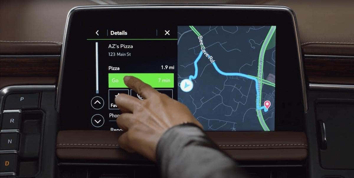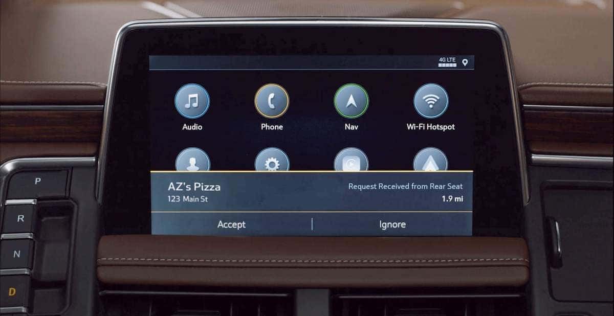 Does the 2021 Chevy Tahoe really have rear seat navigation? Yes it does. By selecting “Navigate”, the screen will display your current location on the map. Remember, the screen operates like a tablet so the gestures are very intuitive such as Pinch and Zoom with your fingers.
