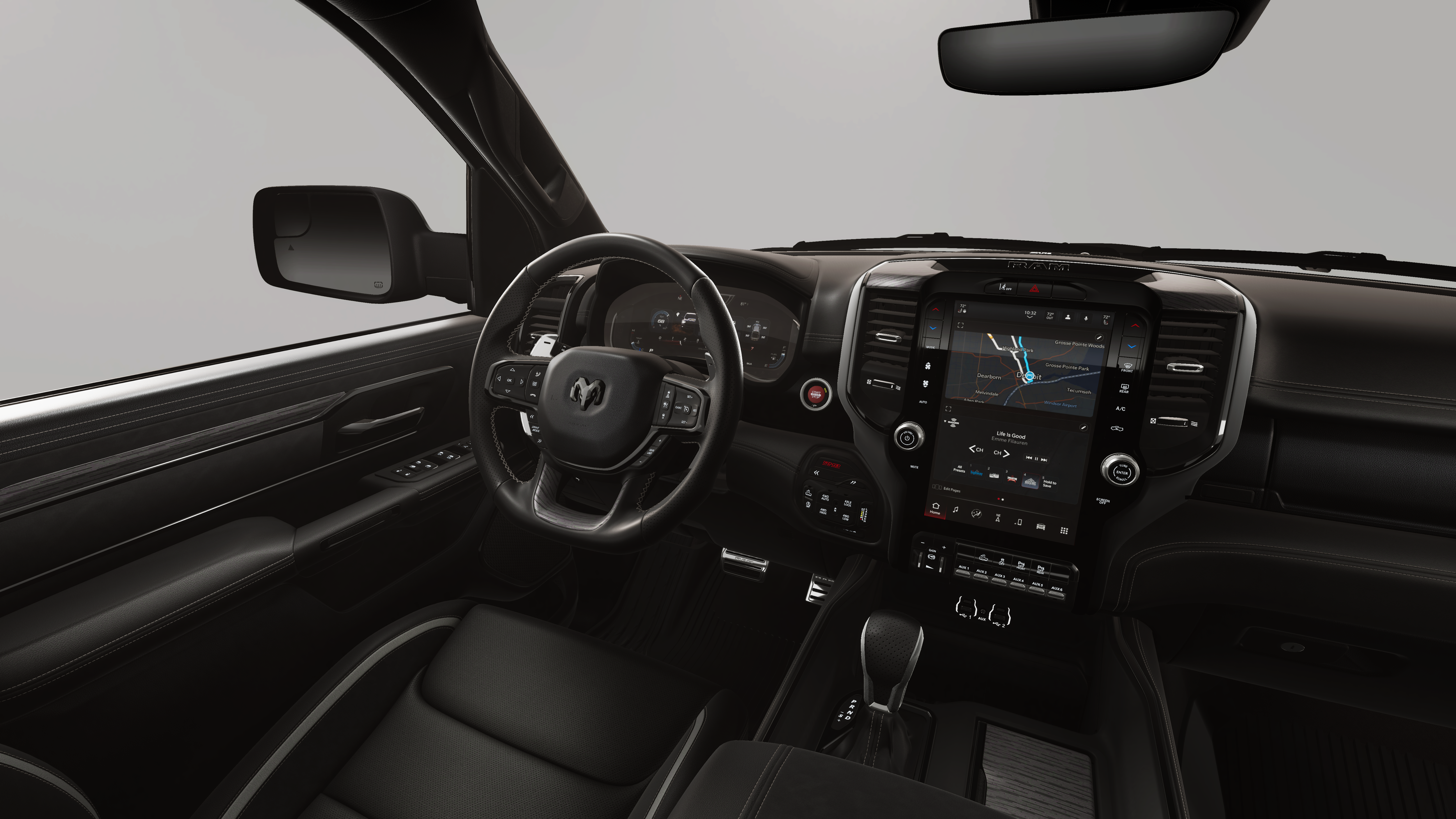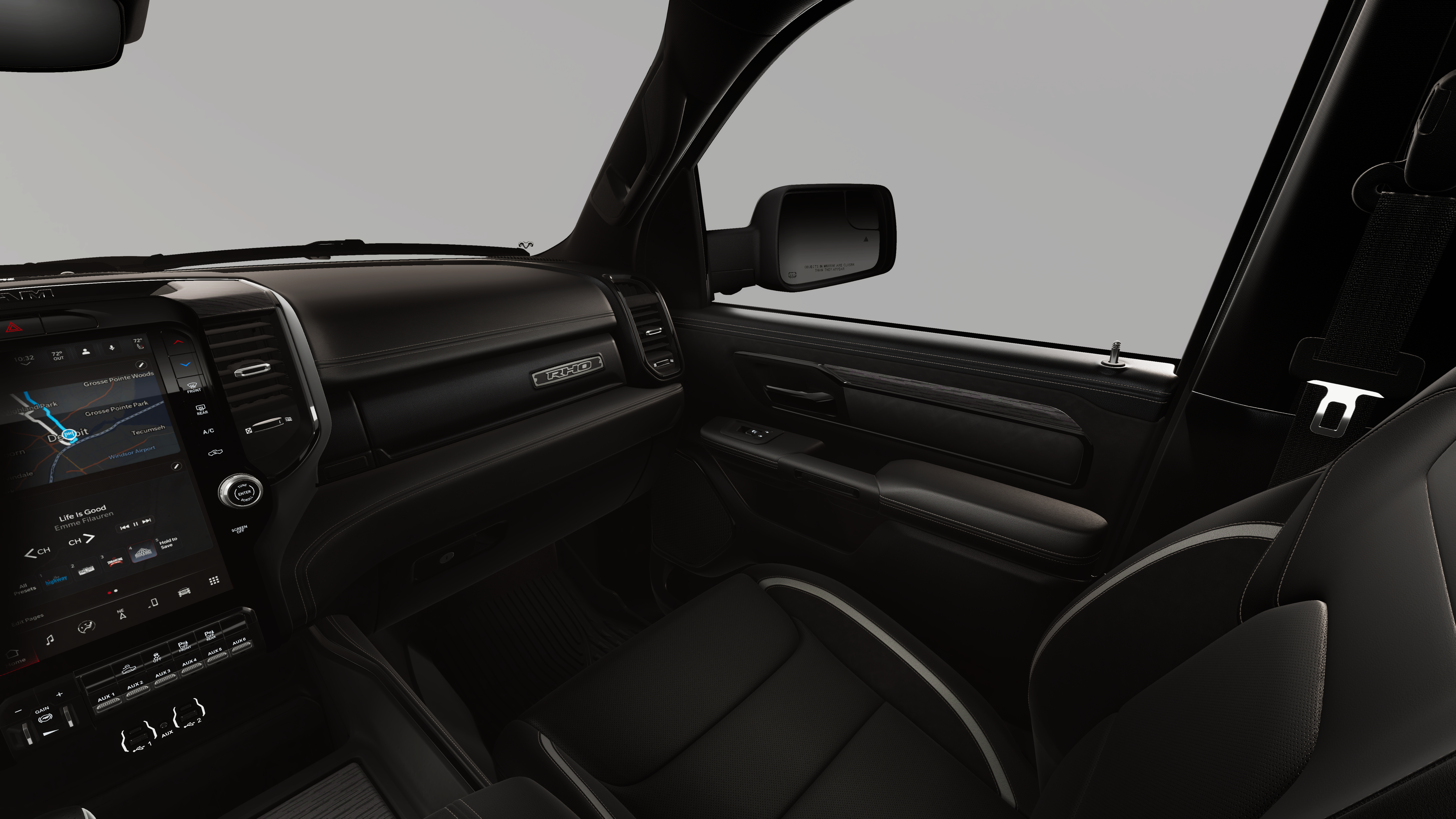 The interior of the Ram 1500 RHO is a masterpiece of craftsmanship, featuring premium materials and thoughtful design elements that elevate your driving experience. Sink into the luxurious leather-trimmed bucket seats, enjoy the warmth of the heated steering wheel, and stay connected with the intuitive Uconnect 5 infotainment system and its stunning 12-inch display.