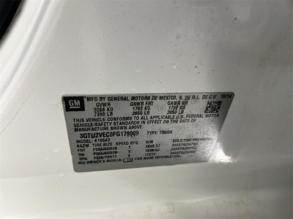 2015 GMC Sierra 1500 SLT 4WD EcoTec3 5.3L V8 6-Speed Automatic Electronic with Overdrive 4D Crew Cab Summit White 6-Speed Automatic Electronic with Overdrive, 4WD, Jet Black/Dark Ash Leather, CD player, Front dual zone A/C, Heated front seats, Leather Wrapped Heated Steering Wheel, Power driver seat, Power Sliding Rear Window, Power windows, SLT Preferred Package, Speed control, Steering wheel mounted audio controls.