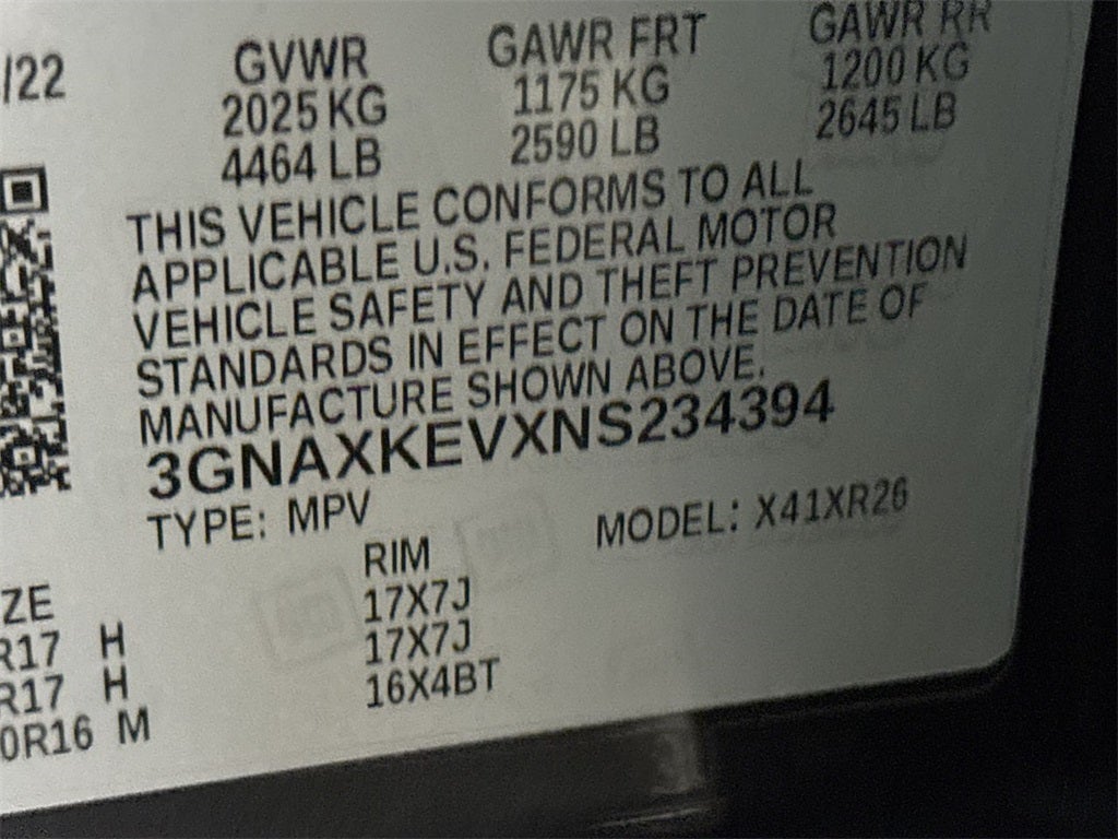 - Tires, P225/65R17 all-season blackwall (FWD only.)