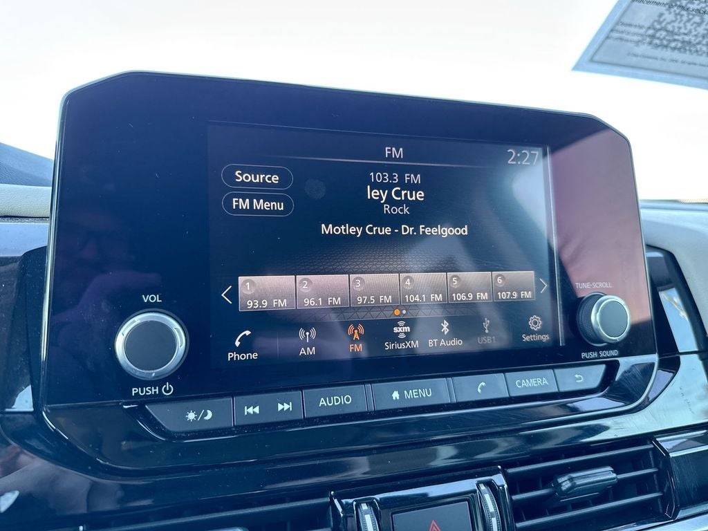 - Radio: AM/FM Audio System w/NissanConnect -inc: 6 speakers, Radio Data System (RDS), Apple CarPlay and Android Auto, 8" color display w/multi-touch control, SiriusXM Satellite Radio w/advanced audio features, 2 illuminated front USB connection ports (1 type A, 1 type C) for iPod interface and other compatible devices, Bluetooth® hands-free phone system and streaming audio, Speed-Sensitive Volume control (SSV), hands-free text messaging assistant and Siri Eyes-Free/Google Assistant voice recognition